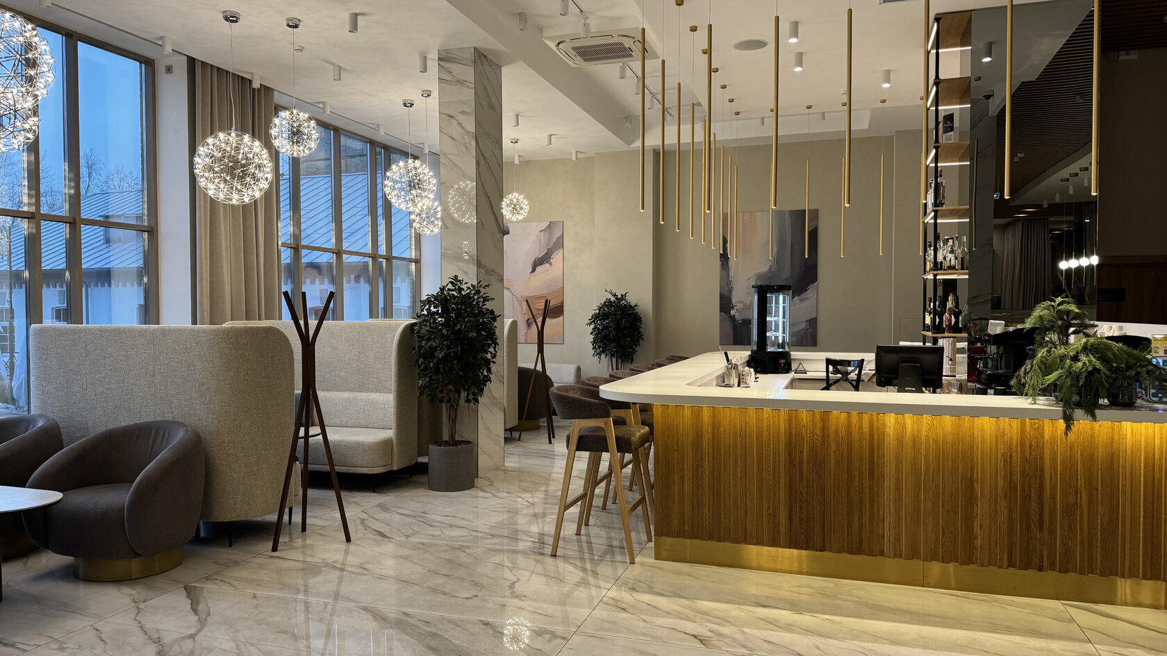Лобби - бар располагается на первом этаже отеля